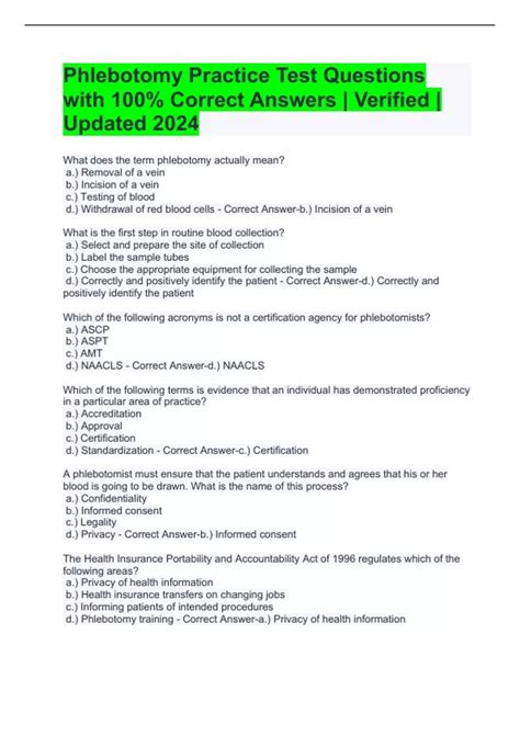 Read Online Phlebotomy Test And Answers Doc By Click Button. Phlebotomy Test And Answers it’s easy to recommend a new book category such as Novel, journal, comic, magazin, ect. You see it and you just know that the designer is also an author and understands the challenges involved with having a good book. You can easy klick for detailing book and you can read it online, even you can download it